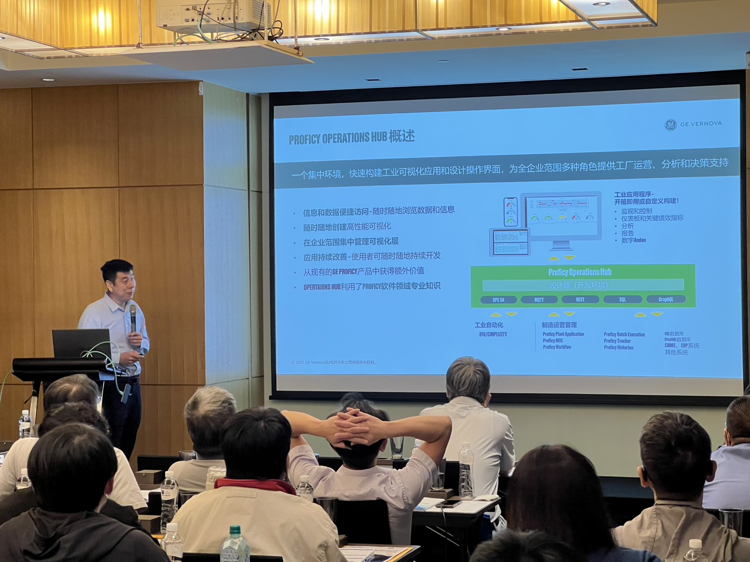 而下午的議程,也邀請到 GE VERNOVA 系統架構師-劉尊義總監進行 Proficy Operations Hub 等產品新功能的精彩介紹。