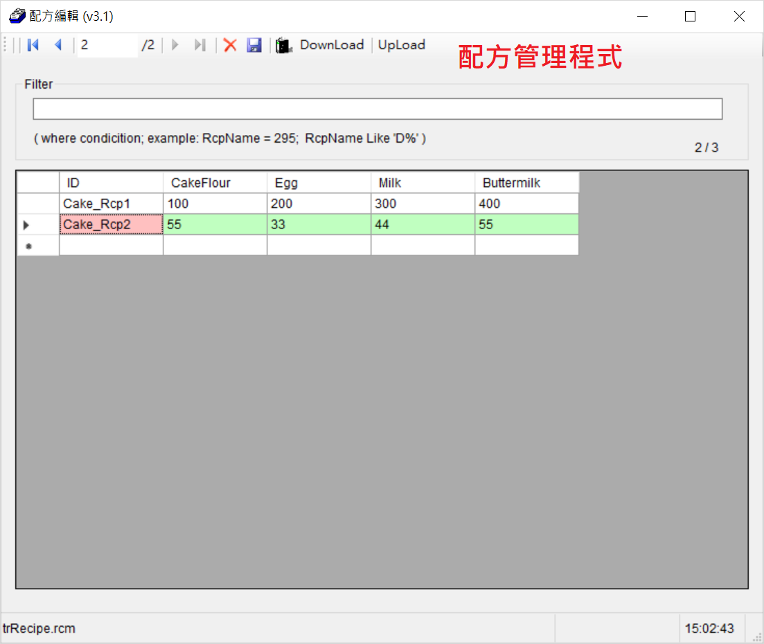 圖控於執行模式下,操作人員可以動態新增、刪除、下載、上載配方。