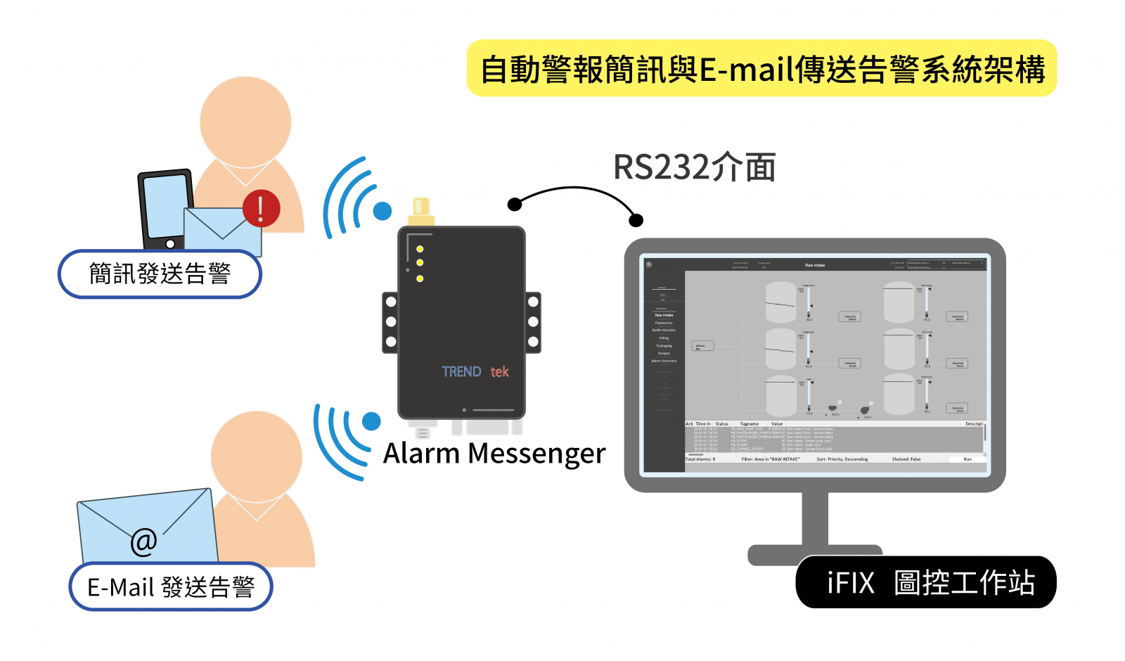 握與回應是提升警報管理效率之方式。警報簡訊機(Alarm Messenger)其設計目的在於,一但有任何警報發生,能夠立即發出