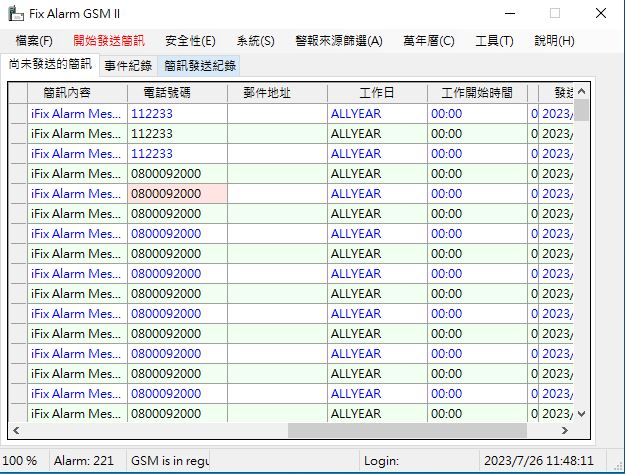 7.不需在圖控內撰寫任何程式,在同一介面可自由設定將警報訊息經由簡訊/E-mail 同時發給使用者,增加監控行動力。