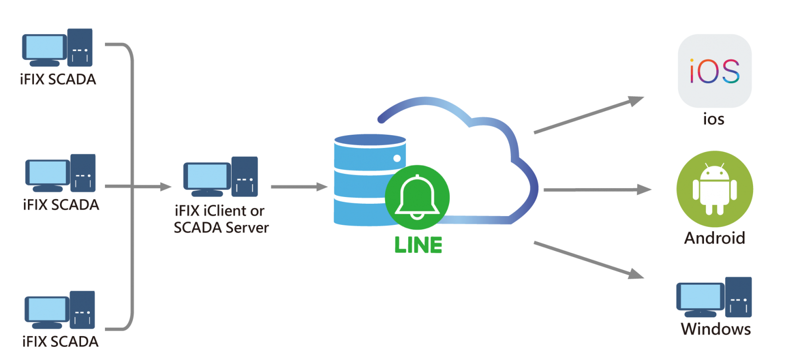 LAM 行動告警系統結合最受歡迎的Line推播功能,能夠立即接收 iFIX SCADA 系統警報訊息,主動通知系統操作人員通知警報狀態。